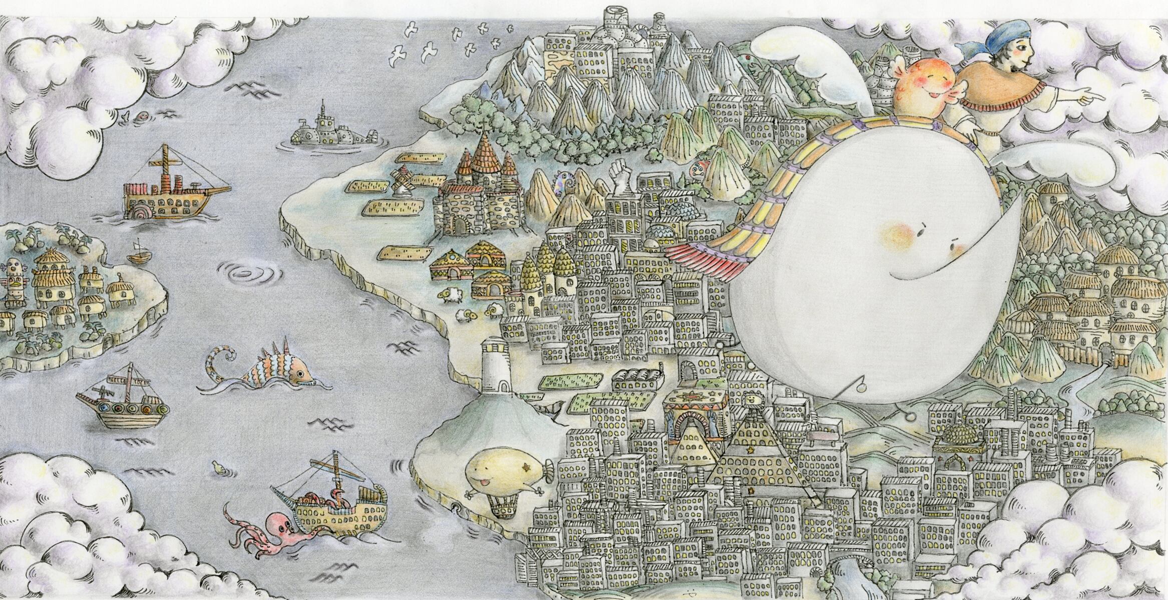 不思議な空飛ぶ生きものサナダ鳥に乗って、