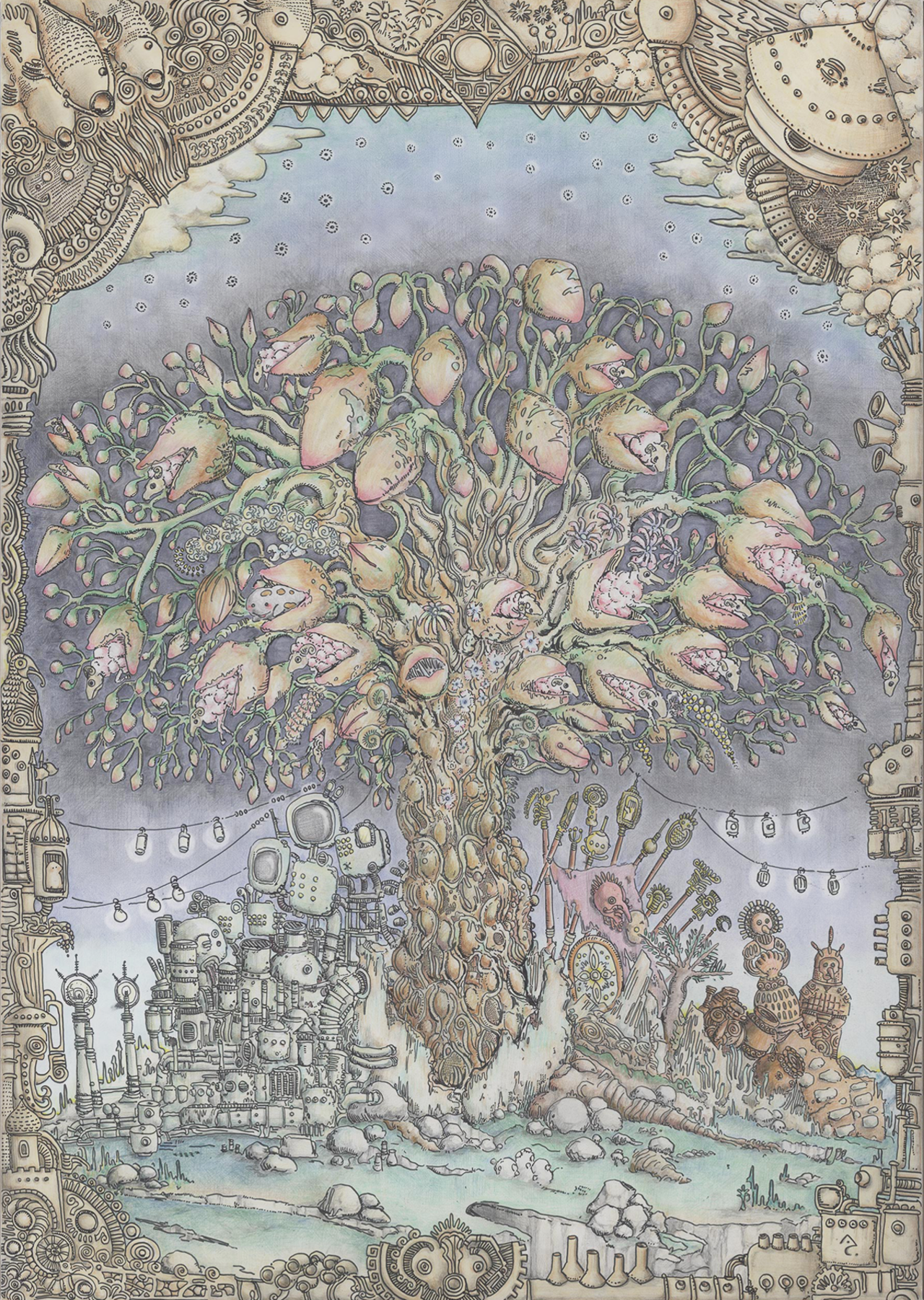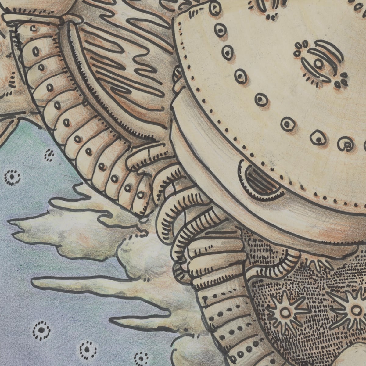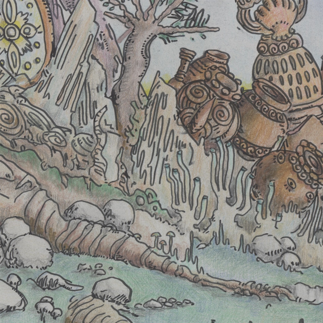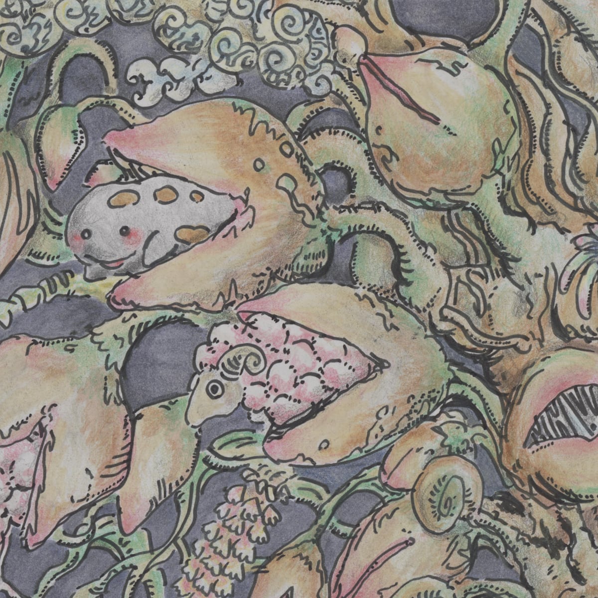 ケント紙、ペン、マーカー、色鉛筆、鉛筆